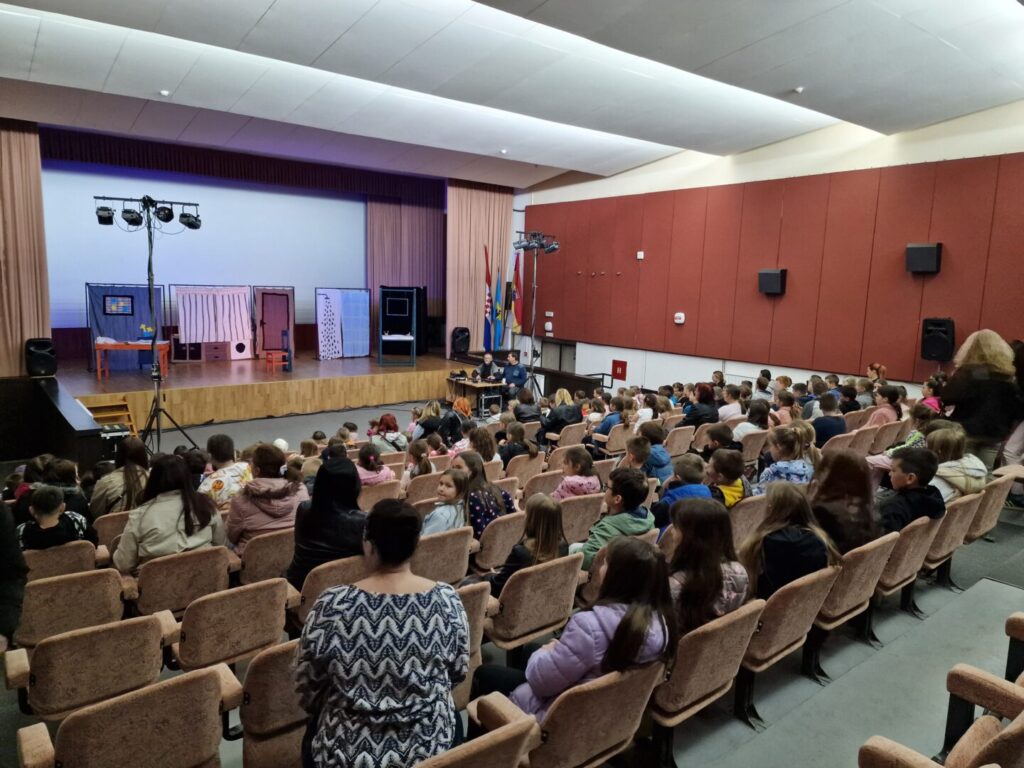 Dvorana Doma kulture bila je ispunjena uzbuđenim i radoznalim malim gledateljima koji su s velikim zanimanjem pratili zbivanja na pozornici. Osmijesi na licima učenika i oduševljeno pljeskanje potvrdili su da je predstava ostavila snažan dojam.